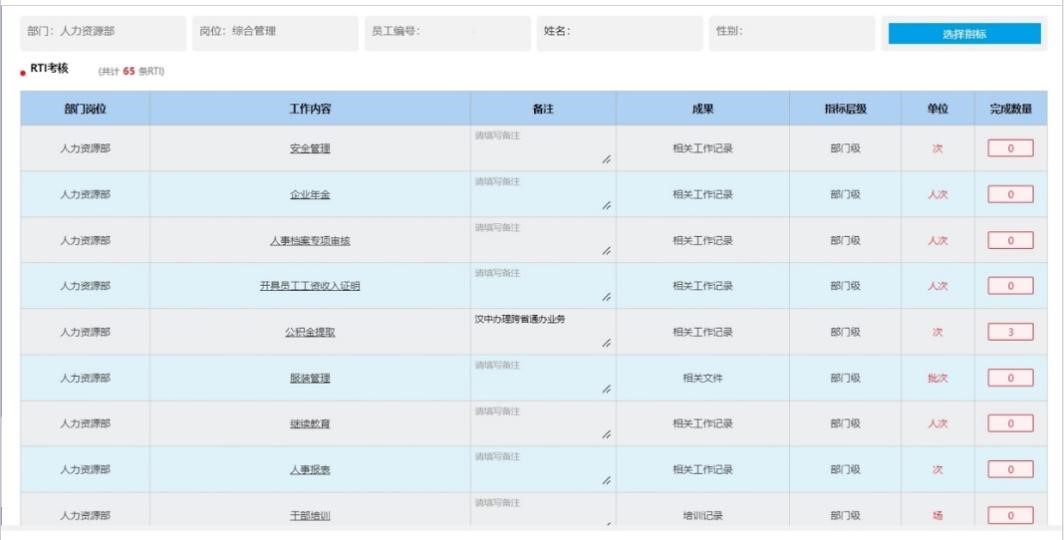 RTI即例行工作任务指标,按照管理模块或工作类型,将工作、任务、活动分解细化,达到可衡量、可定义、可追溯的程度。再通过6个维度,27项因素进行量化,进而得到工作、任务、活动的量化分值,并汇总形成RTI指标库导入绩效管理软件系统。以此对员工每日或每周所做工作进行全方位量化考核。在每月考核周期内,员工可以登录绩效管理软件系统,只需选择已完成工作内容,填写已完成的工作数量。考核结束后,系统将自动汇总提交至部门负责人处。部门负责人登录绩效管理软件,即可查看员工日、周、月完成的具体工作,并根据员工实际工作数量、质量、难度进行评分。考核结束后,系统自动提取并根据评分结果生成工资表,这不仅提升了工作效率,而且有效促进了部门内部既竞争又合作的良好工作氛围,形成了激励与协作并行的良性机制。